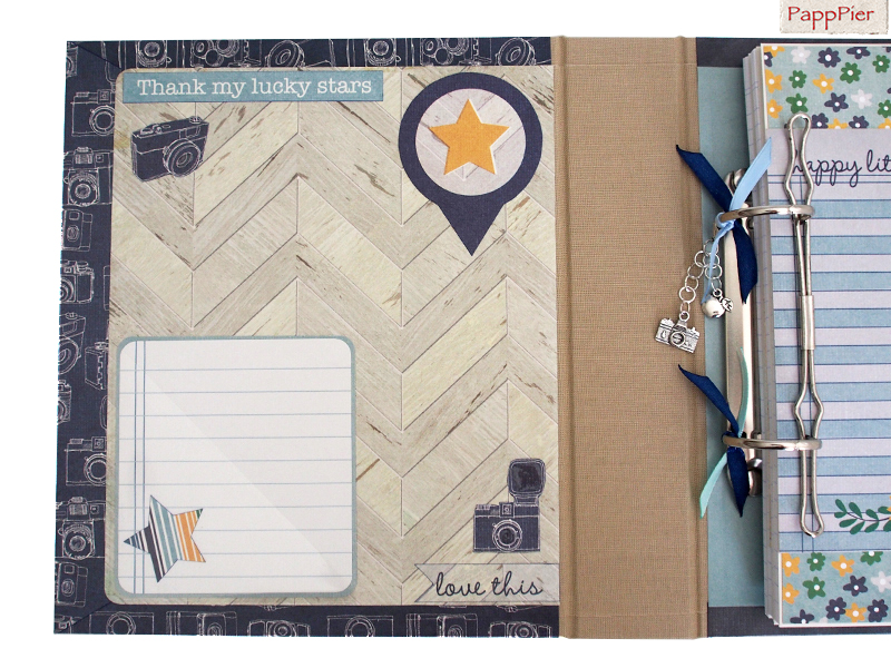 Da ich zur Zeit recht wenige Ringbücher im Shop habe, kommen davon in nächster Zeit wieder ein paar mehr nach. Hier ein Ringbuch in DinA5, dazu aus Papieren der Serie noch 2 Karten und ein paar Deko-Klammern.